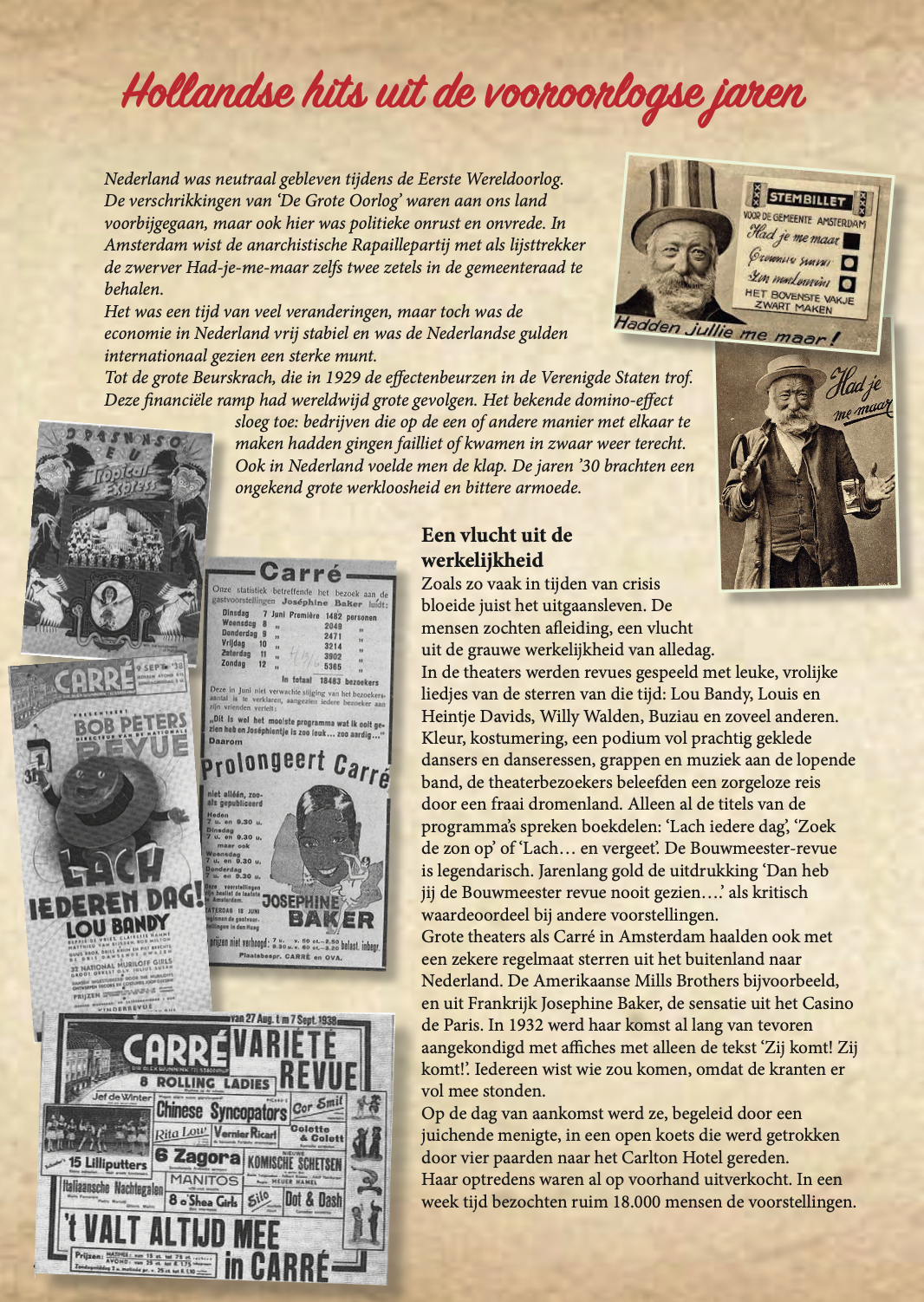 Stap in de wereld van de jaren ’30, een bewogen decennium waarin Nederland balanceerde tussen bittere armoede en sprankelend vermaak. Terwijl de economische crisis hard toesloeg, bloeide het uitgaansleven als een broodnodige vlucht uit de grauwe dagelijkse werkelijkheid. Van de sprankelende showfilms in de bioscoop tot de opzwepende orkesten in danszalen en op de radio: muziek en dans boden de broodnodige kleur in een onzekere tijd. Dit boek brengt grote ‘Hollandse Successen’ uit die periode tot leven en laat zien hoe artiesten en ensembles uitgroeiden tot nationale iconen. Ontdek het unieke tijdsbeeld van een Nederland dat, ondanks alles, bleef zingen en dromen.